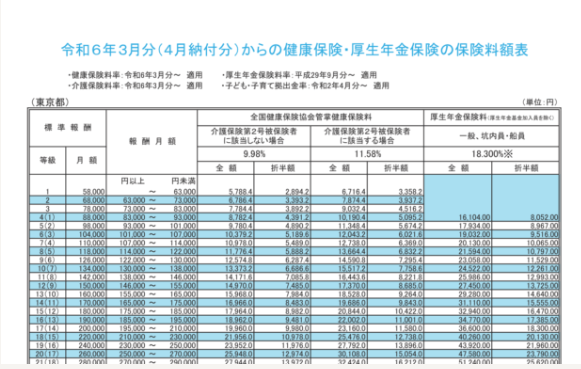 *Tham khảo: Bảng mức phí bảo hiểm y tế và bảo hiểm y tế và bảo hiểm hưu trí từ tháng 3 năm 2024 (áp dụng cho khoản nộp tháng 4) (Khu vực Tokyo)